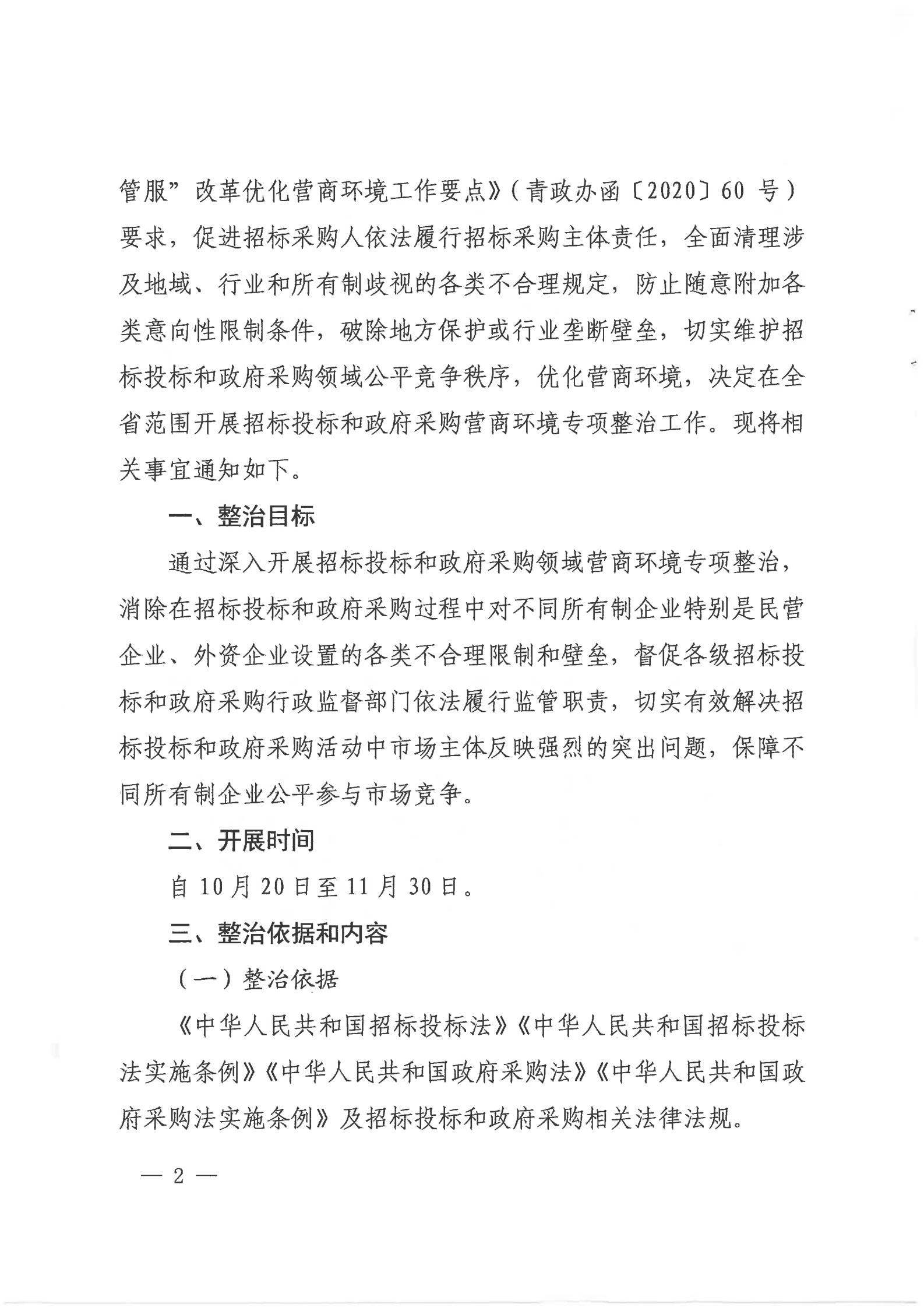 青海省發(fā)展和改革委員會(huì)青海省財(cái)政廳青海省住房和城鄉(xiāng)建設(shè)廳等關(guān)于開展我省2020年招標(biāo)投標(biāo)和政府采購營商環(huán)境專項(xiàng)整治工作的通知