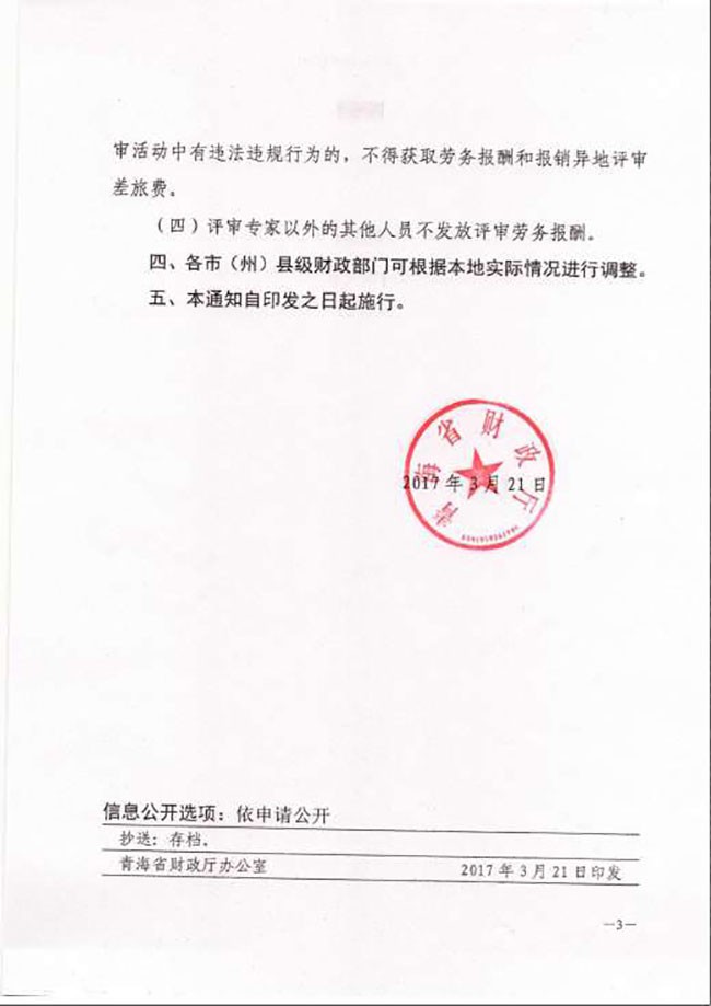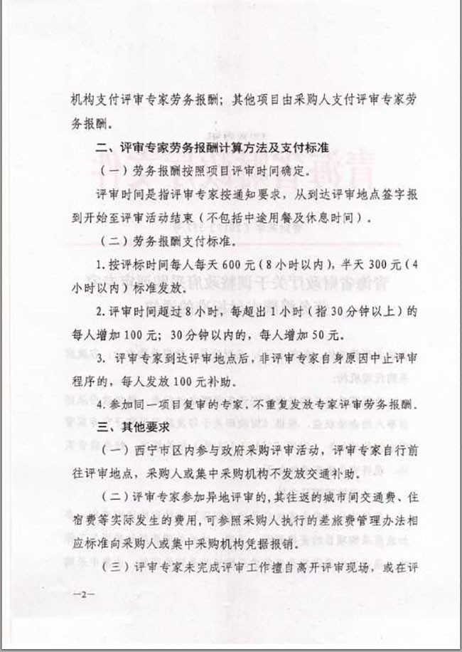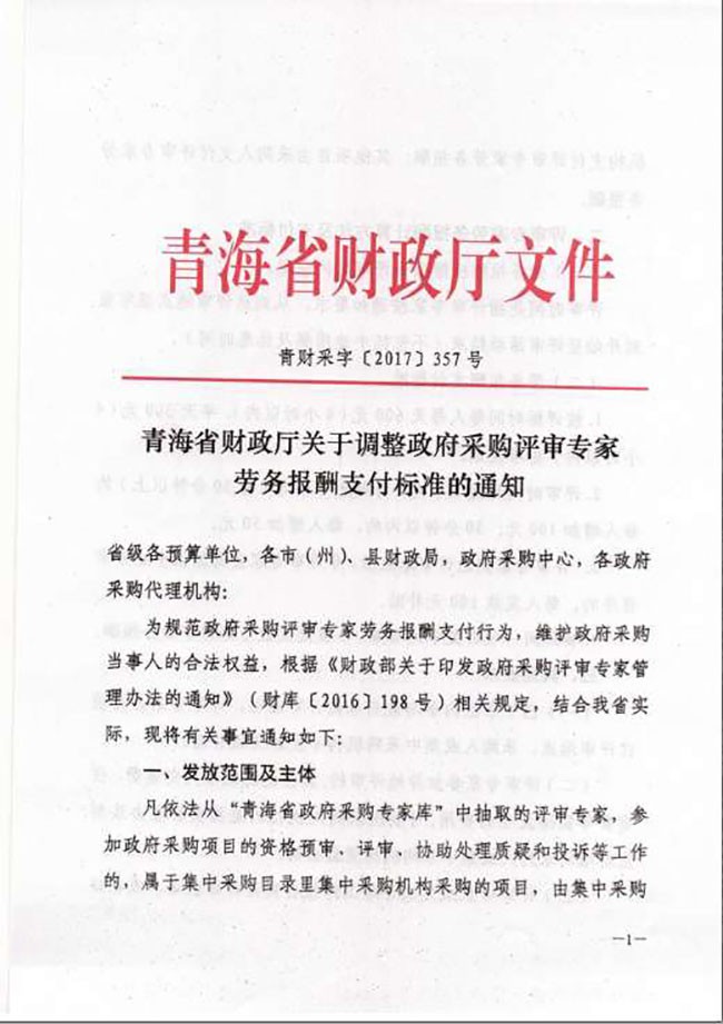 青海省財(cái)政廳關(guān)于調(diào)整政府采購(gòu)評(píng)審專家勞務(wù)報(bào)酬支付標(biāo)準(zhǔn)的通知(青財(cái)采字〔2017〕357號(hào))