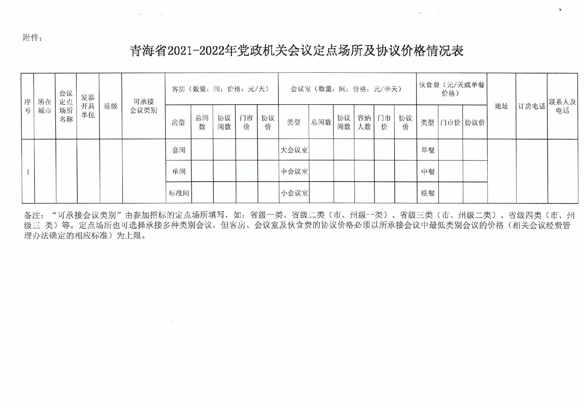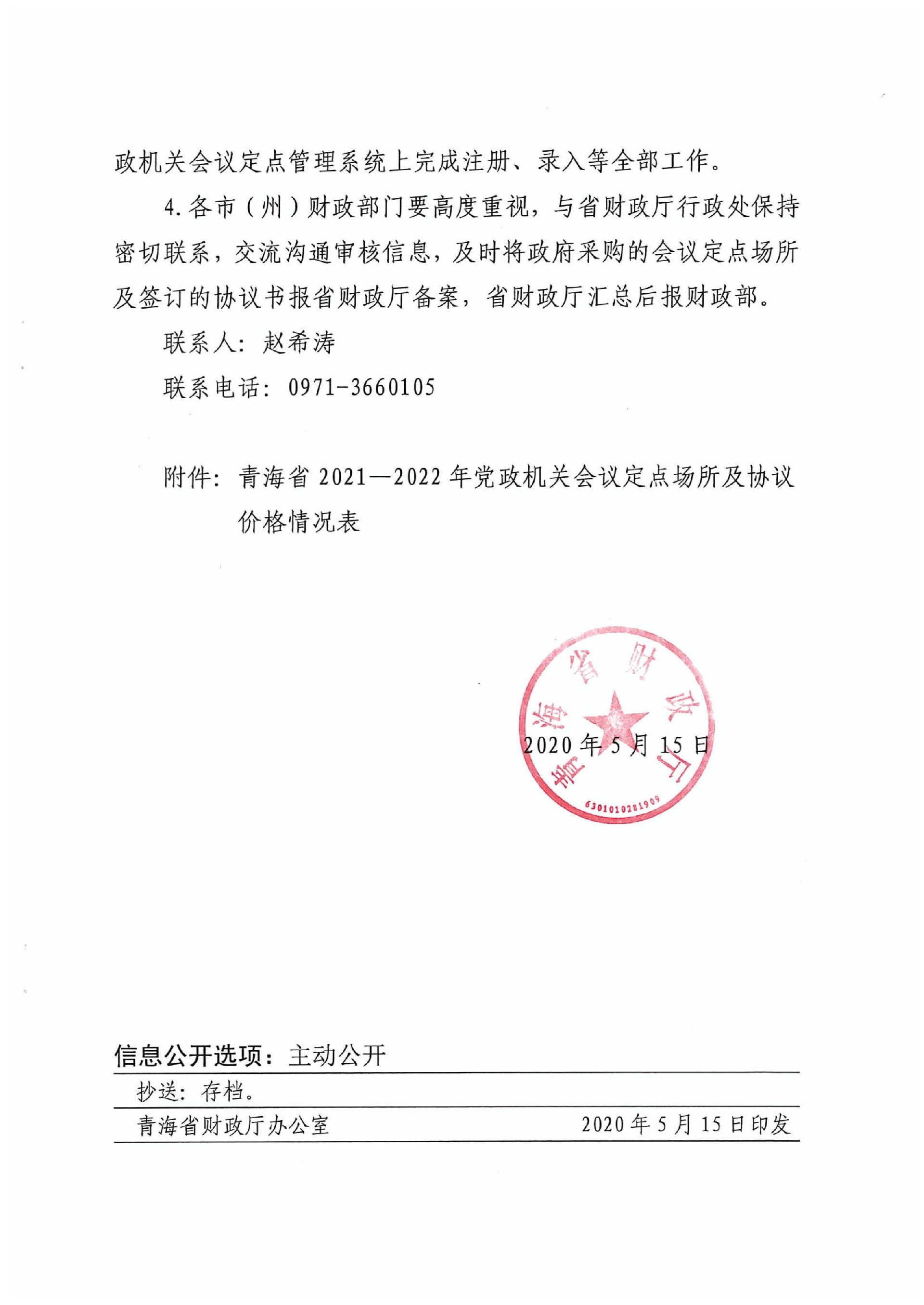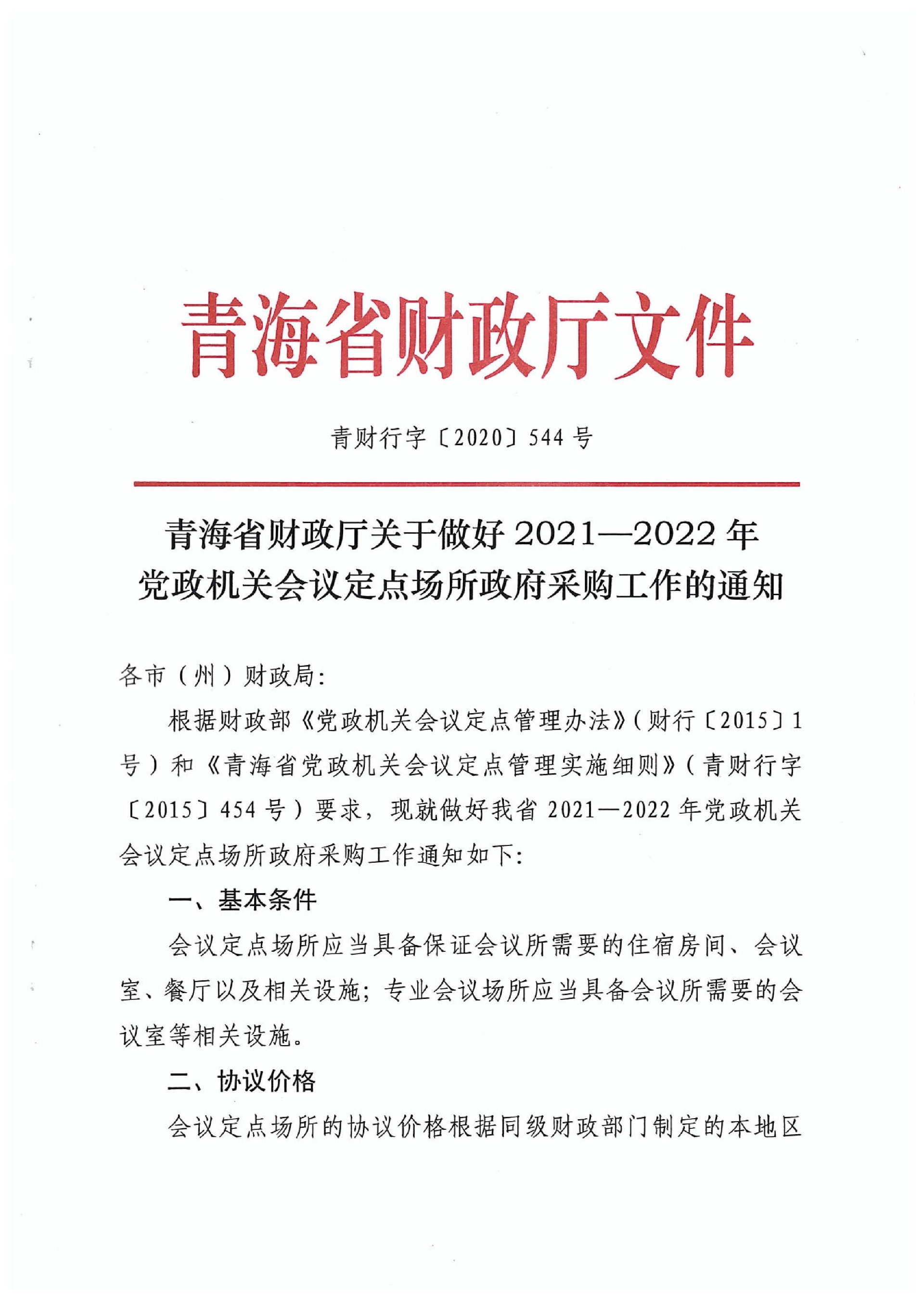 青海省財(cái)政廳關(guān)于做好2021-2022年黨政機(jī)關(guān)會(huì)議定點(diǎn)場(chǎng)所政府采購(gòu)工作的通知