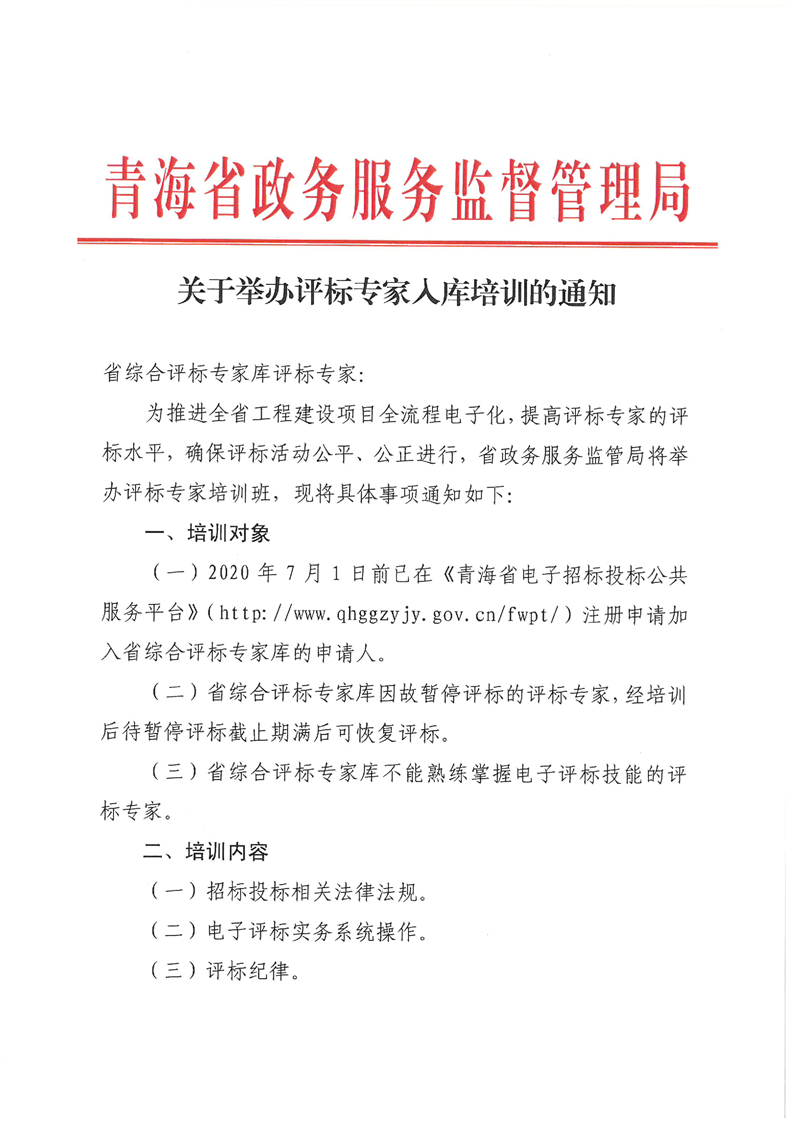 關(guān)于舉辦評(píng)標(biāo)專家入庫(kù)培訓(xùn)的通知