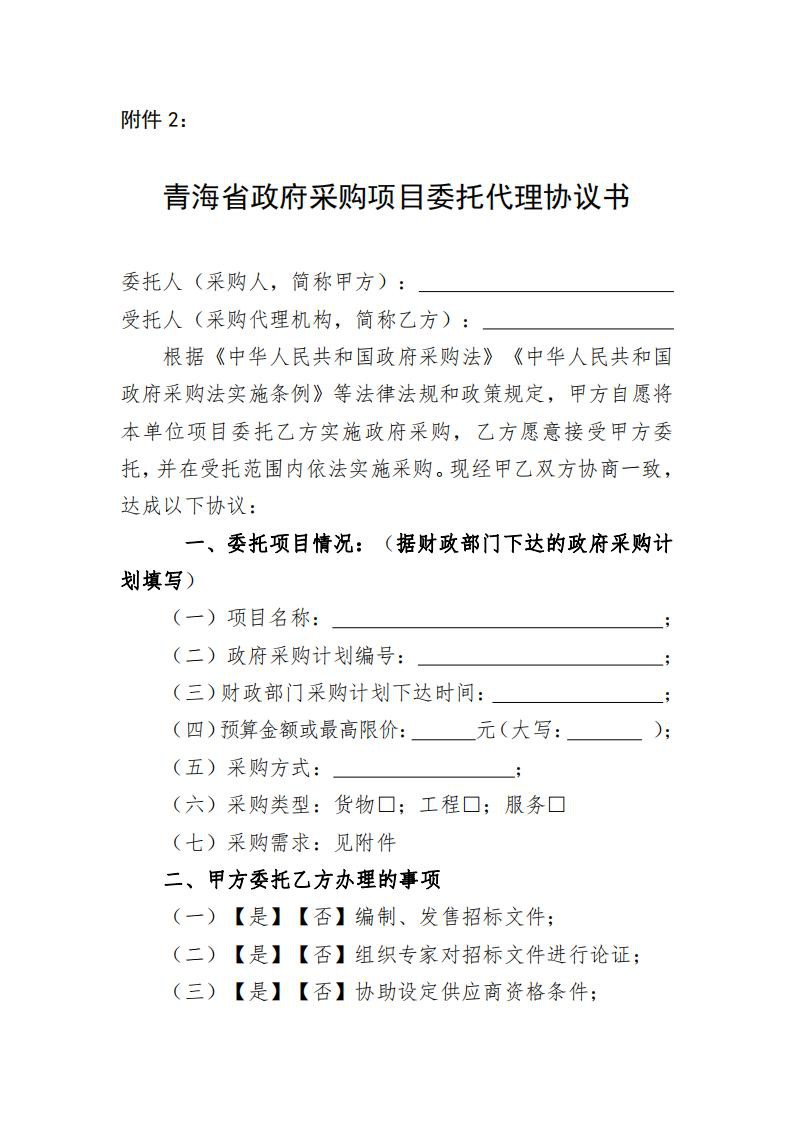青海省政府采購協(xié)會轉(zhuǎn)發(fā)青海省財政廳 關于印發(fā)《青海省政府采購項目委托代理 協(xié)議書(修訂版)通知》的通知